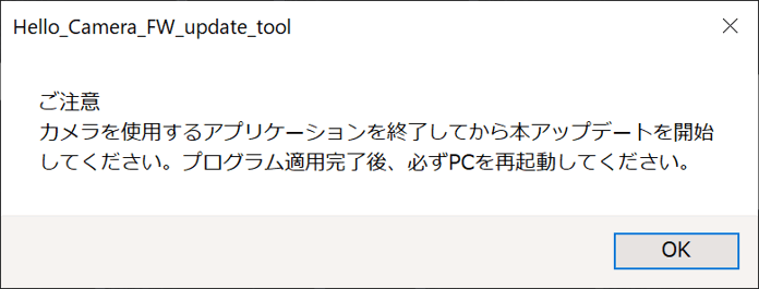 • 本プログラム適用前に、必ずカメラを使用するアプリを終了させてください。