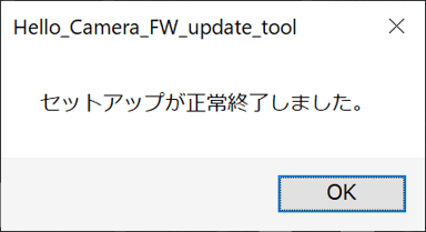 6. 「「Camera FW updatefinished.」と表示後「セットアップが正常に終了しました。」のダイアログが表示されたら、アップデートは正常に完了しています。[OK]をクリックしてください。