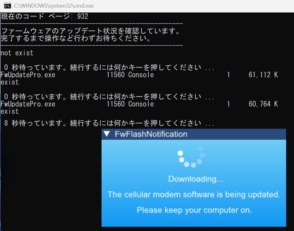 黒い画面(コマンドプロンプト画面)を閉じてしまうとアップデートに失敗します。