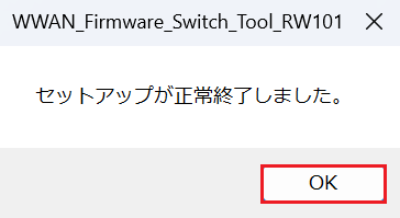 「セットアップが正常終了しました。」と表示されましたら、「OK」をクリックしてください。