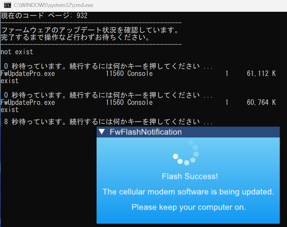 黒い画面(コマンドプロンプト画面)を閉じてしまうとアップデートに失敗します。