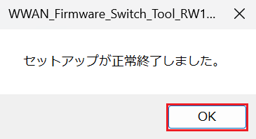 「セットアップが正常終了しました。」と表示されましたら、「OK」をクリックしてください。