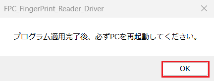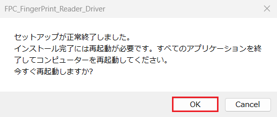 「セットアップが正常終了しました。」のみの表示で、再起動に関する記載が出なかった場合は、再起動は自動的に行われませんので、手動でPCを再起動してください。