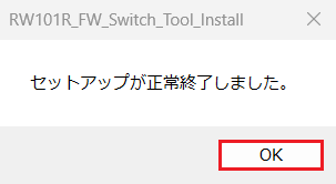 「セットアップが正常終了しました。」と表示されましたら、「OK」をクリックしてください。