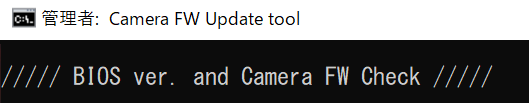「BIOS ver. and Camera FW Check」の画面が表示され、プログラムの適用が開始されますのでそのまましばらくお待ちください。