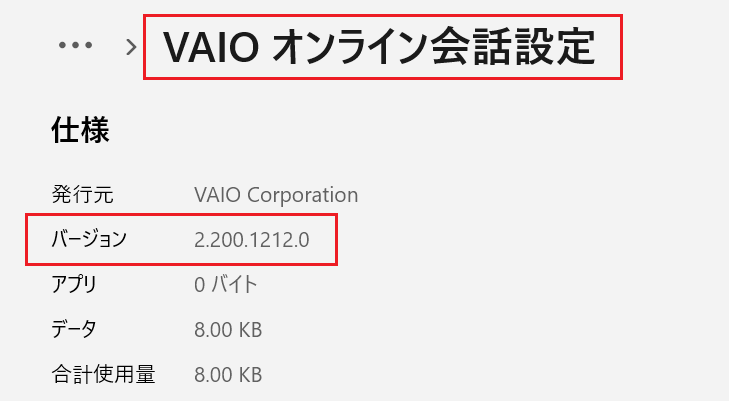 アプリの詳細画面が表示されるので「仕様」欄にある「バージョン」が「2.200.1212.0」となっていれば、正常にアップデートされています。