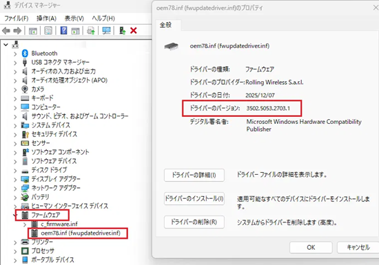 注 意ファームウェアのアップデートのダイアログは表示されない場合があります。